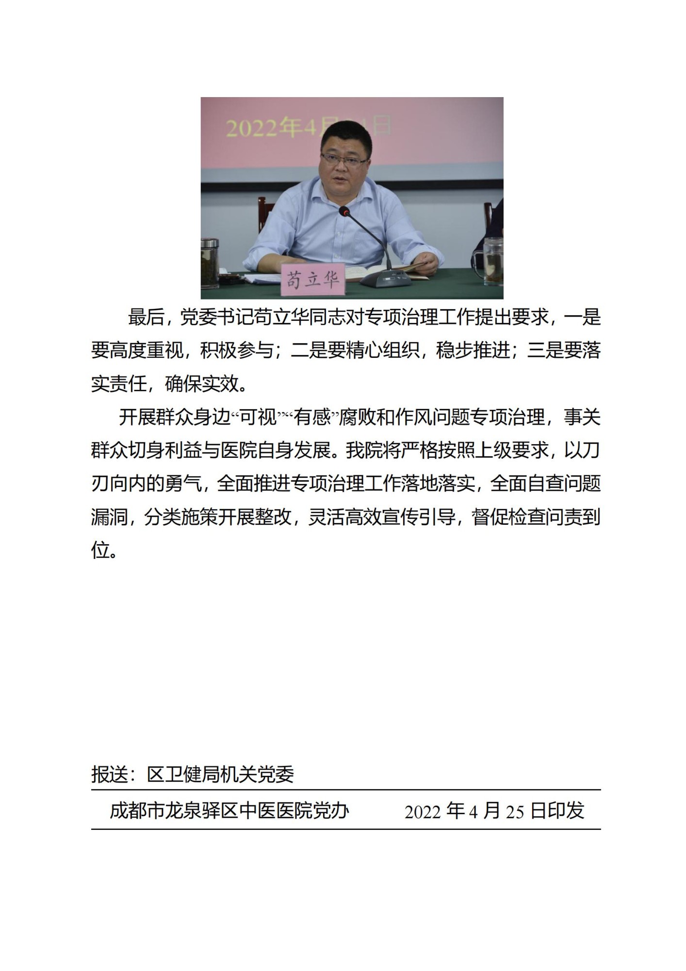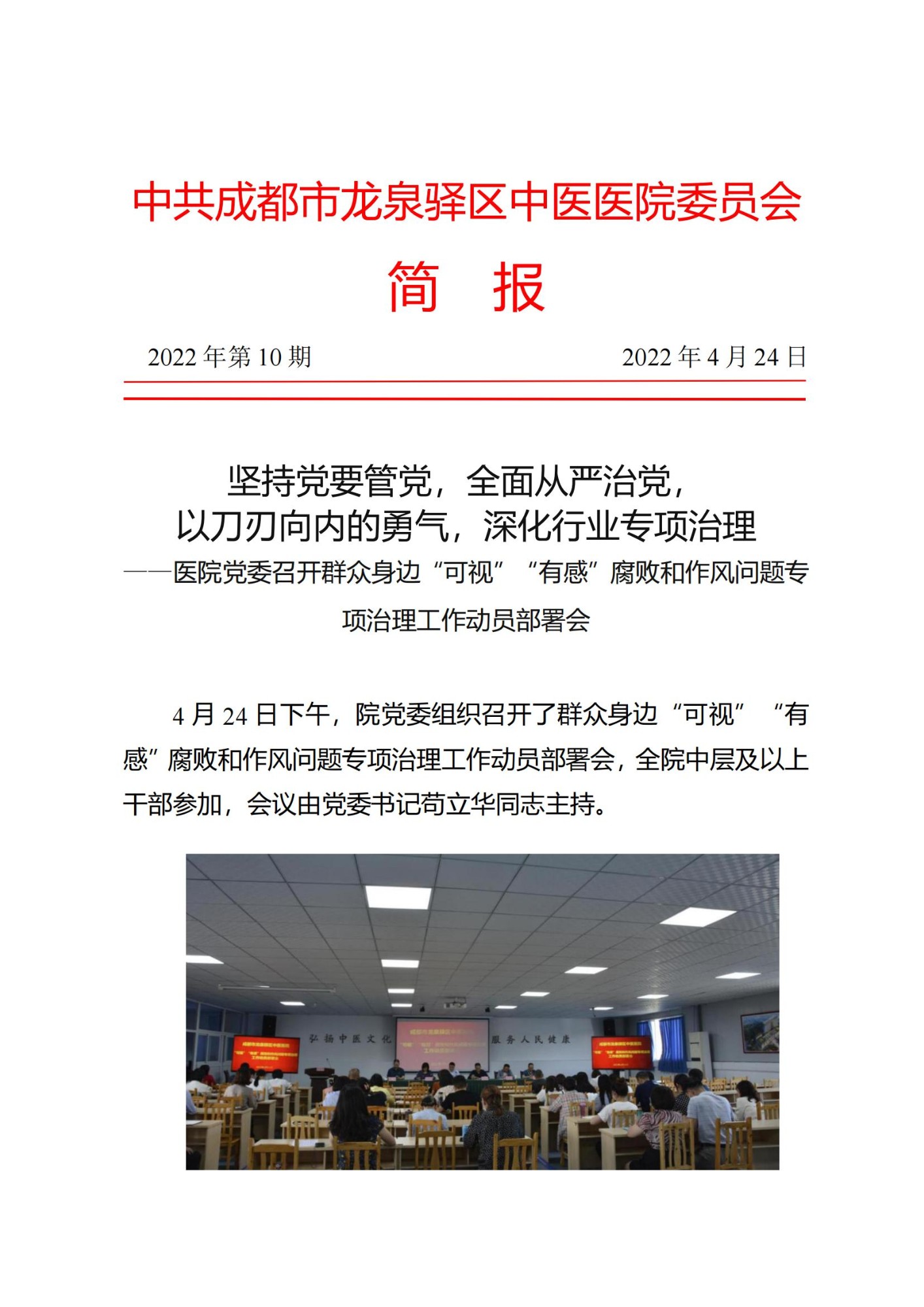 中医院党委简报2022年第10期 开展“可视”“有感”专项治理动员部署会