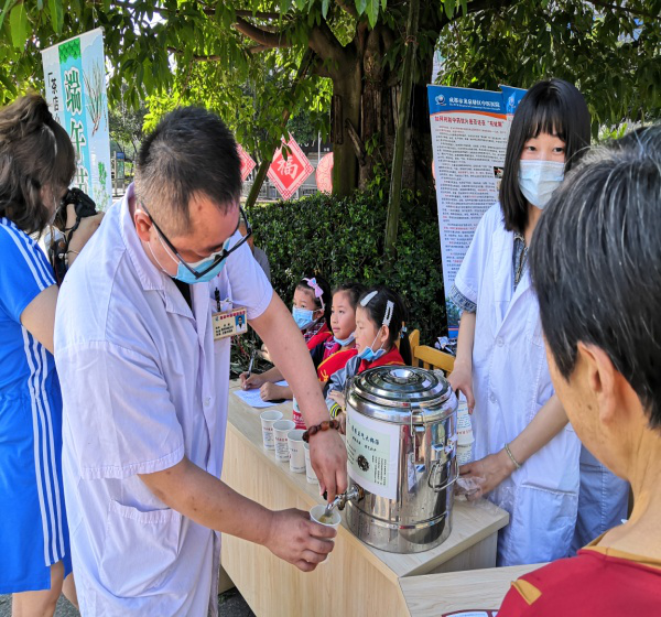 五月初五“端午节”是中华民族最隆重的传统节日之一,也是春末夏初最盛大的一个节日,“端午到,花枝俏,家家户户乐淘淘,挂艾草,戴香包,香香甜甜百福招……”。为传承和发扬中医药文化,6月24日成都市龙泉驿区中医医院在龙泉驿区桃花仙子开展了以中医药为主的“合理用药知识宣传与教育活动”。此次活动专门邀请了龙泉驿区茶店小学的小朋友们参与到活动中来,让娃娃们从小接受中医药文化的熏陶,让中医药的传承从娃娃们开始……