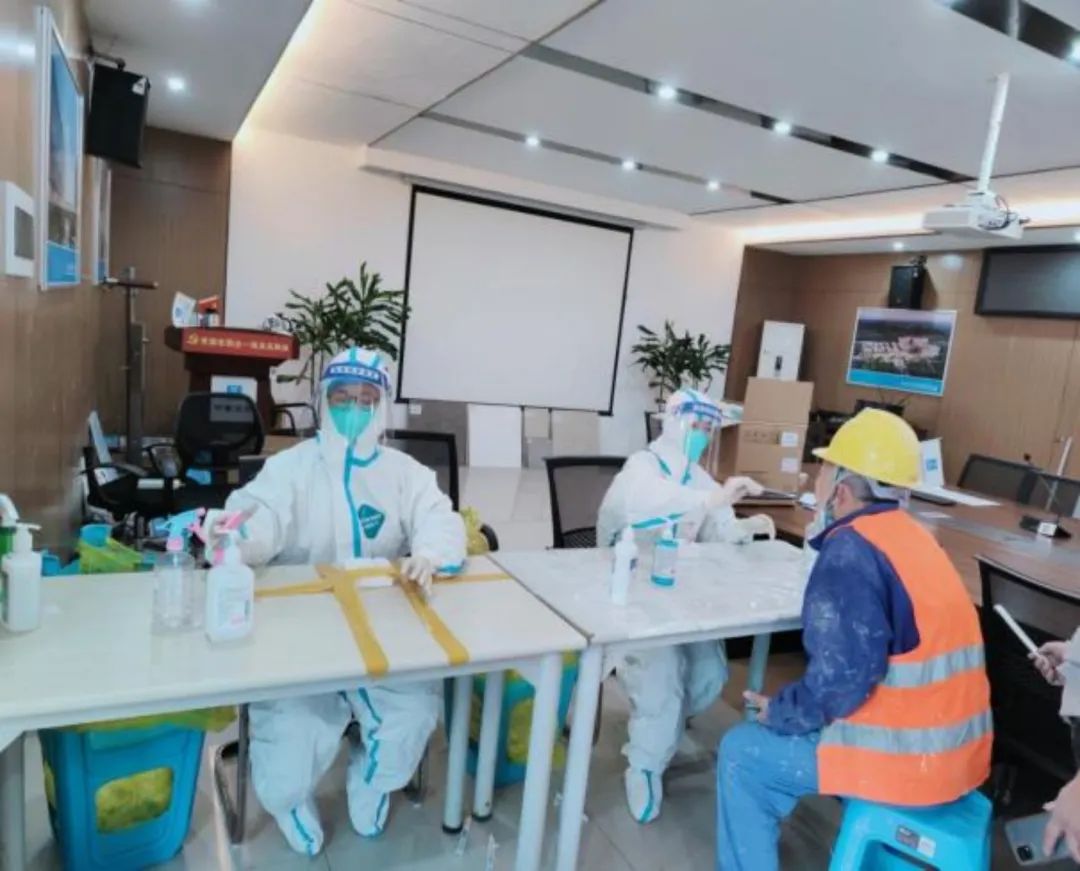 门诊第三党支部两名党员在参观完新医院后,换上白色战甲,为工地580余名工人采集核酸,大大提高了工人们施工效率,保障了现场工人的疫情防控安全。