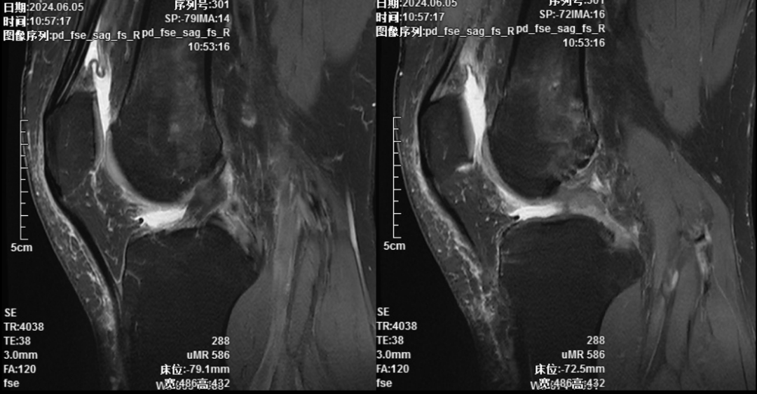 术前核磁共振提示膝关节后交叉韧带断裂