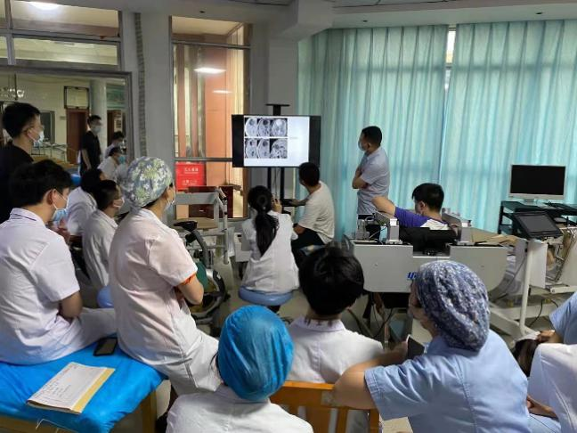 为促进医院放射科与临床科室之间的相互学习和经验交流,2021年8月18日下午放射科应邀联合康复科开展业务沟通学习,由资深主治医师尤志勇为康复科全体医护人员讲解《头颅影像诊断》。