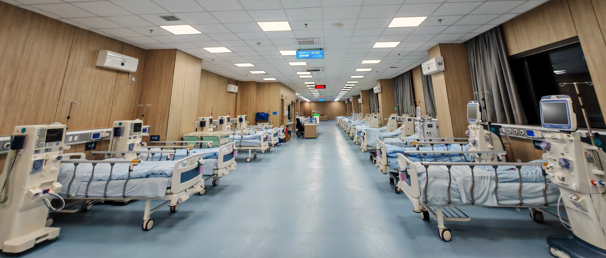 成都市龙泉驿区中医医院血透室:血透中心内部环境宽敞明亮,规划血液透析机位40余张,血透机、血滤机均为国内外知名品牌。