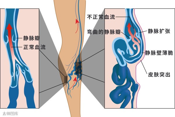 静脉曲张就是静脉的弯曲和扩张。小腿静脉曲张是最重要的疾病之一,也是四肢血管疾患中最常见的疾病之一。静脉曲张形成的主要原因是由于先天性血管壁膜比较薄弱或长时间维持相同姿势很少改变,血液蓄积下肢,在日积月累的情况下破坏静脉瓣膜而产生静脉压过高,使血管突出皮肤表面的症状。不能将静脉曲张和疾病划等号,准确地说,静脉曲张更是一种病理状态。