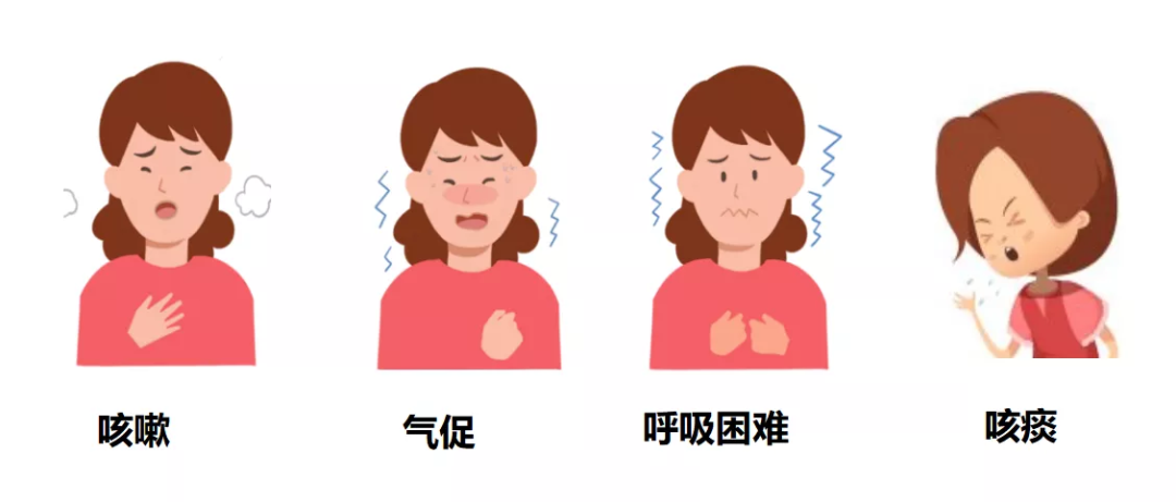 主要临床表现:慢性咳嗽、咳痰、胸闷、喘息、气促、呼吸困难等。