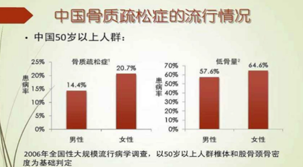 预防骨质疏松,除了补钙还要做好这些事! 2022-10-20 10:54针灸科 认识骨质疏松骨质疏松是一种代谢性骨病,主要是由于骨量丢失与降低、骨组织微结构破坏、骨脆性增加,导致患者易出现骨折的全身代谢性骨病。骨质疏松患者的男女比例为3:7,也就是说中老年女性更容易患此疾病,平均每三名50岁以上的女性中就会有一人患有骨质疏松。而事实上骨质疏松正在逐渐年轻化且非常容易导致跌倒、骨折、甚至死亡今天是世界骨质疏松日一次给大家讲清楚