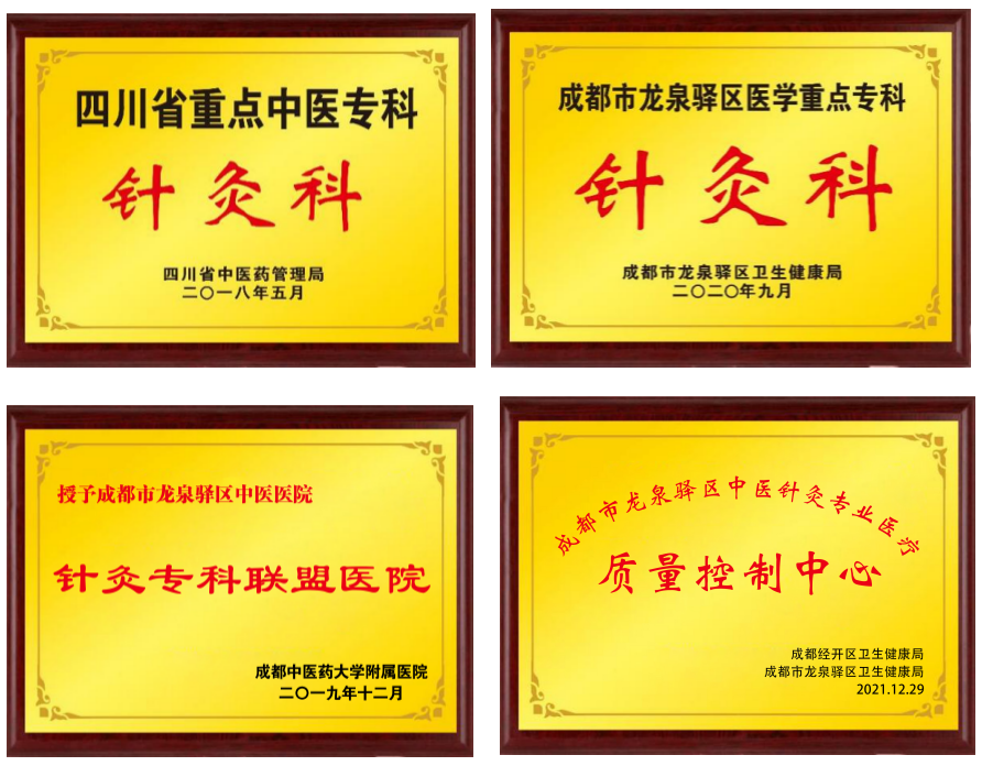 我院针灸科是四川省中医重点专科,龙泉驿区中医针灸专业质控中心,科室技术力量雄厚,有龙泉名中医1名,副主任医师3名,中级职称10名,治疗师4名,硕士研究生8名,国家级及省级专委会委员6名。主持省级科研课题1项,发表高质量论文数十篇。拥有国内外先进设备:冲击波、高能量激光治疗仪、中低频疼痛治疗仪、超声波治疗仪、微波治疗仪、骨质疏松治疗系统、臭氧治疗仪、蜡疗仪等,以及各类中风康复训练设备。