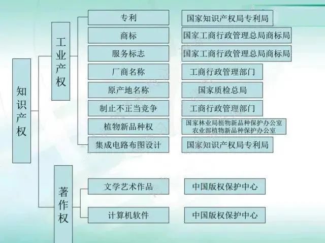 知识产权的类型主要有两类:一类是著作权(也称为版权、文学产权),另一类是工业产权(也称为产业产权)。