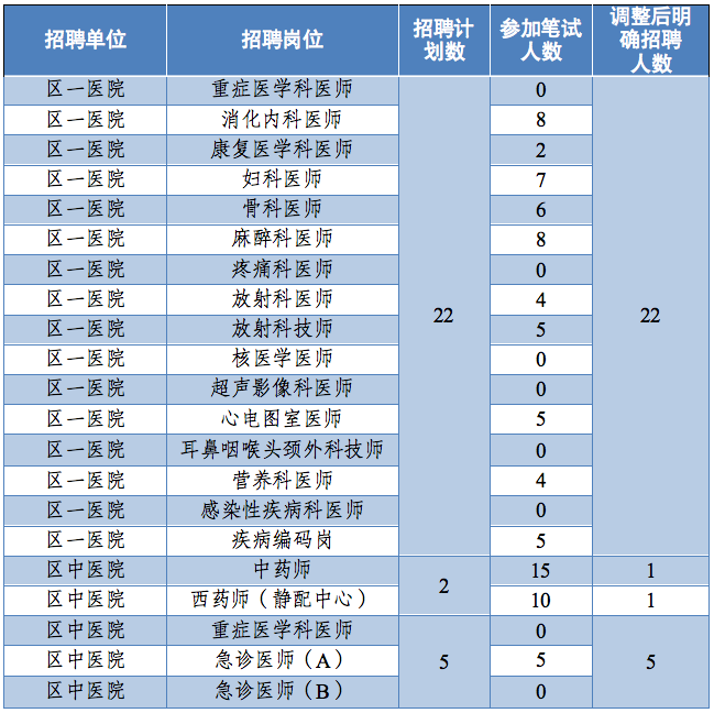 根据报名、资格审核及笔试考试情况,针对部分招聘名额合并使用的岗位,现进一步明确相应岗位的招聘人数如下: