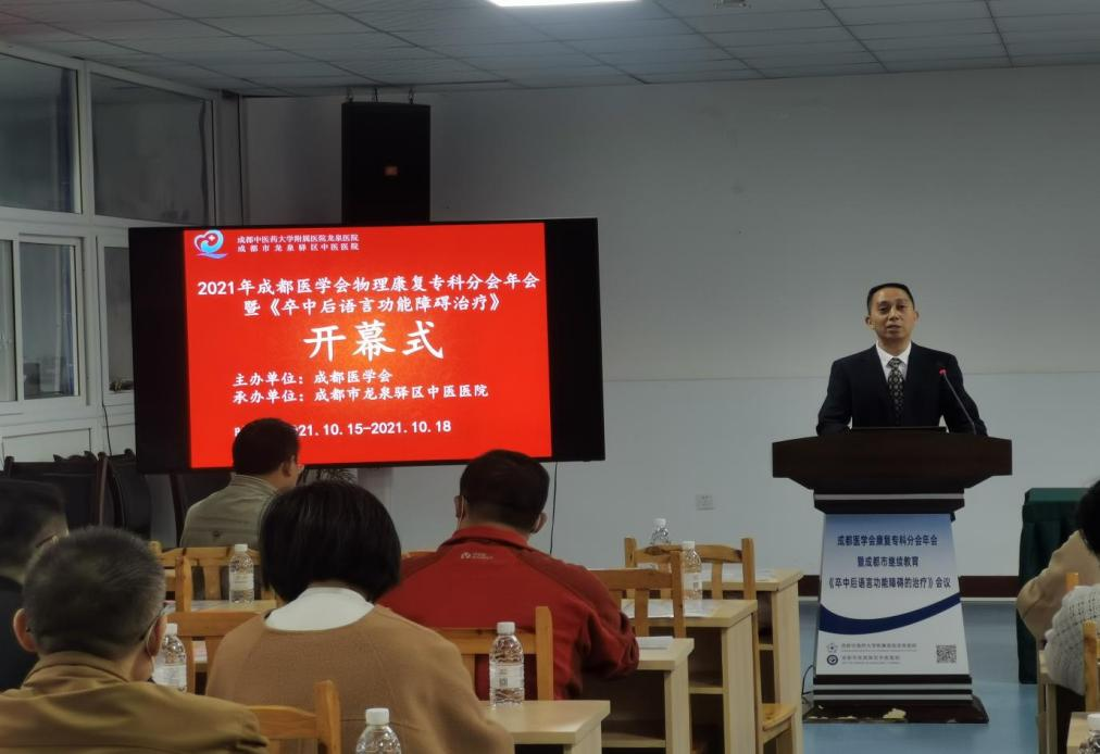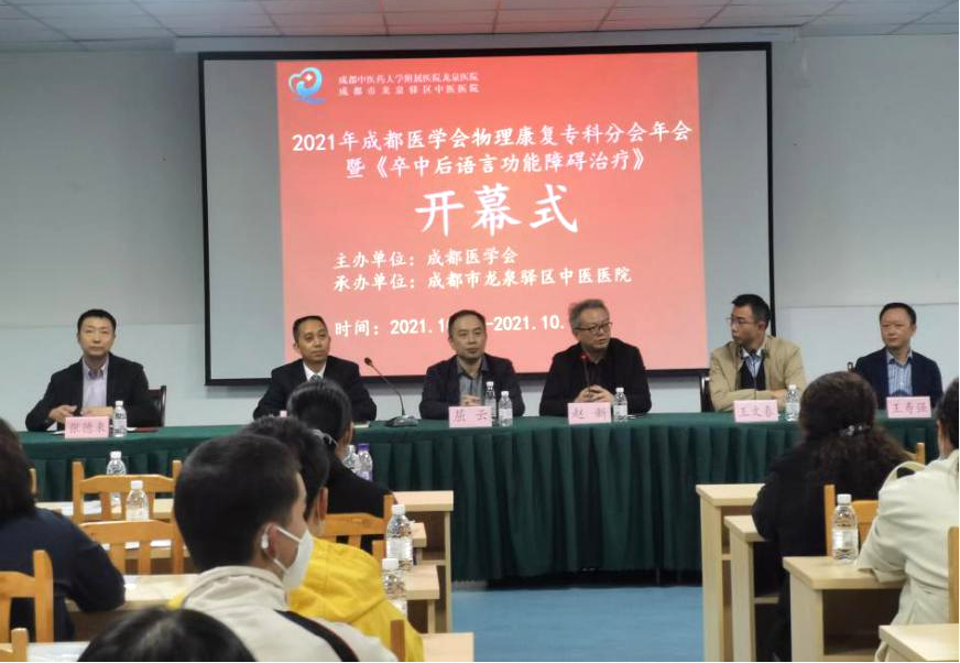 为推动康复医学高质量发展,给患者提供更优质的康复服务,10月15日,成都市龙泉驿区中医医院隆重举办2021年成都医学会物理康复专科分会年会暨成都市继续教育项目《卒中后语言功能障碍的治疗》,全省10多家医疗机构共计100多名代表参加,成都医学会物理康复专科分会会长赵新、四川大学华西医院屈云教授、西部战区总医院副主任王文春、宜宾第二人民医院康复医学科副主任王寿强出席。