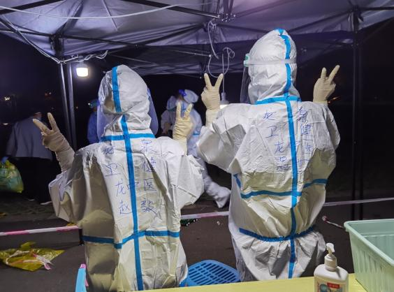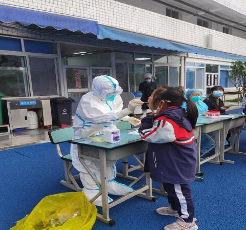 在医院紧急集合后赶到云立方社区时,已经有上百人在排队等待核酸检测,她顾不上吃午饭就立即投入了采样工作,直到16:30才结束采样。但她的工作还远未结束,19时,接到命令的她又立即赶往另一社区进行采样工作,直到深夜才采样结束,疲惫的她还没来得及休息,凌晨1点又接到了紧急集合采样的电话,她回头看了眼熟睡的孩子,轻轻地掩上门,便再次奔赴新的战场。