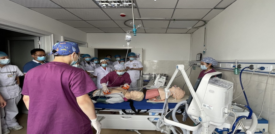 送达ICU以后,和ICU医护人员一边交接病情,一边抢救。