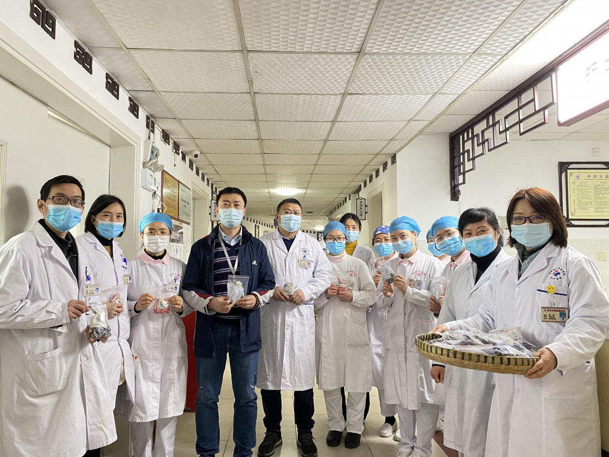 张德来副院长表示,一线工作人员在疫情防控中要做好自身防护,这些香囊含有藿香、薄荷、山奈、苍术等四味中药材,可提高免疫力,预防疾病,舒缓压力。