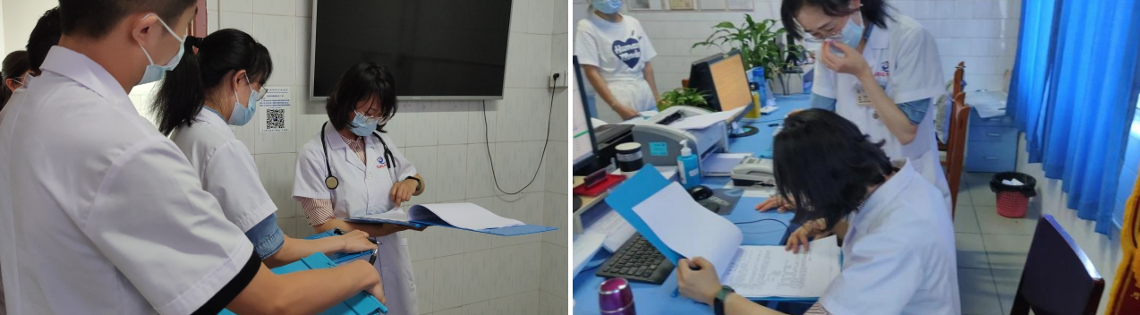 讲座结束后魏华博士还到我院内二科病房进行教学查房和处方点评,魏华博士对病房内的患者进行仔细查体和亲切询问,评价目前使用治疗方案,并指导下一步诊疗计划。在处方点评环节,我院消化内科医师所开处方也获得了魏华老师的认可,辨证和遣方用药都与病人病情贴合,收效良好。