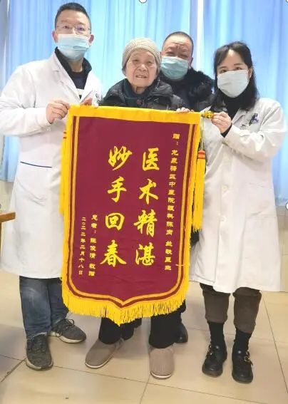 经过完整的术前检查后,查无绝对手术禁忌症,陈岗主治医师先后为该患者做了双眼白内障超声乳化摘除术联合人工晶体植入术。术后第二天,测得患者双眼视力均为5.0,老人高兴极了,感激地送来锦旗,并开心地说:“谢谢医生,是你们让我再一次看到了清晰明亮的世界,让我感觉仿佛自己又年轻了。”在此,我们也诚挚感激这位老人,她的肯定与鼓励激励我们奋勇前进,为更多患者提供更精湛的技术和更优质的服务!