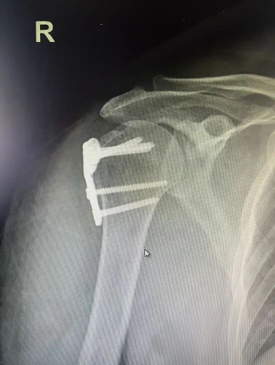 张女士因为摔伤致右肩部肿痛伴功能受限5天入院。入院前患者先后于某市人民医院、某红十字医院住院治疗,症状未见改善,右肩剧烈疼痛,功能活动受限。后经朋友介绍转入我院骨伤科治疗,住院期间拍片提示右肱骨大结节骨折,骨折断端错位明显,具有确切手术指征,完善术前检查后,择期行右肱骨大结节骨折切开复位内固定手术治疗,术后指导患者行右肩关节功能锻炼。现患者已治愈出院,右肩已无疼痛,手术切口愈合良好,右肩关节功能活动正常。