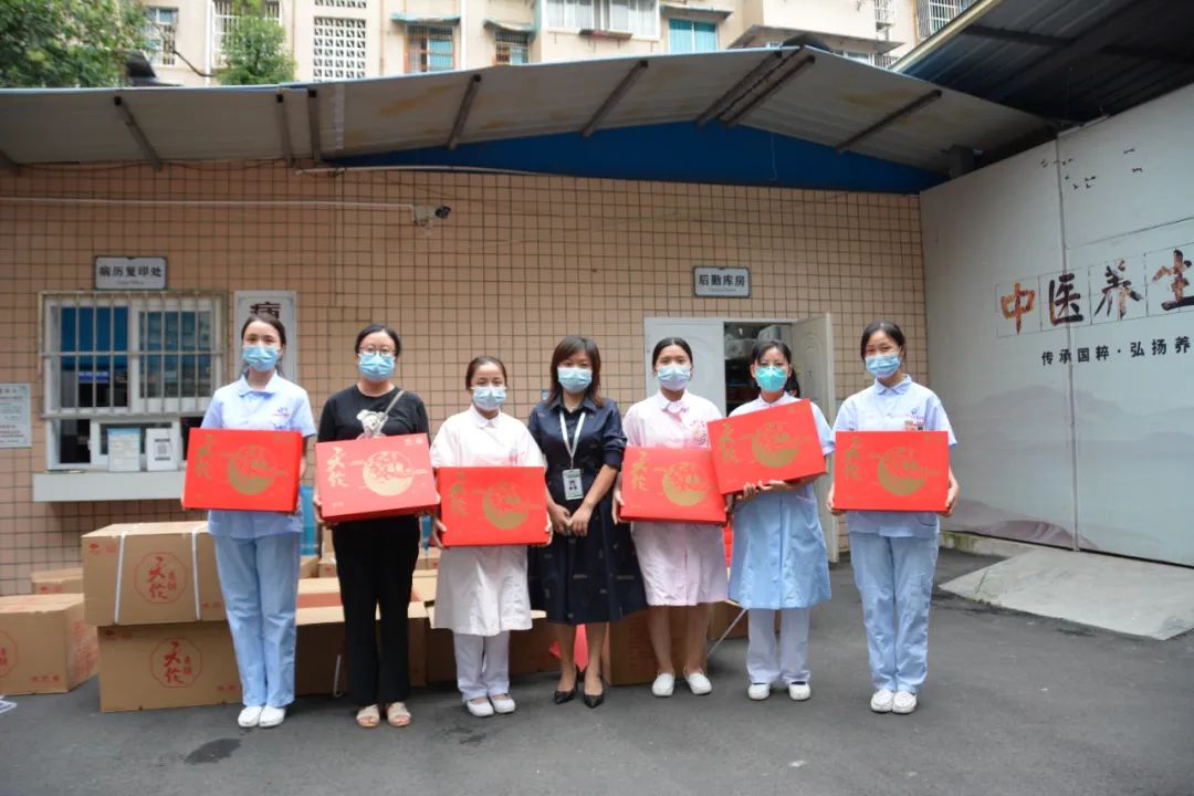 捐赠活动结束后,院长白兰述、党委副书记、纪委书记何明清将爱心月饼分发至医护人员的手中,并向各科室医护人员表达节日的问候。