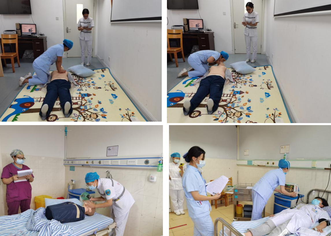 培训考核内容为危急重症急救操作项目,包括简易呼吸器使用、徒手心肺复苏、心电监护应用、人工气道管理、除颤仪应用等。在情景模拟环节,机动库护士成员分组轮流进行培训考核。培训考核现场气氛活跃,互动频繁,同时全部考核达标。