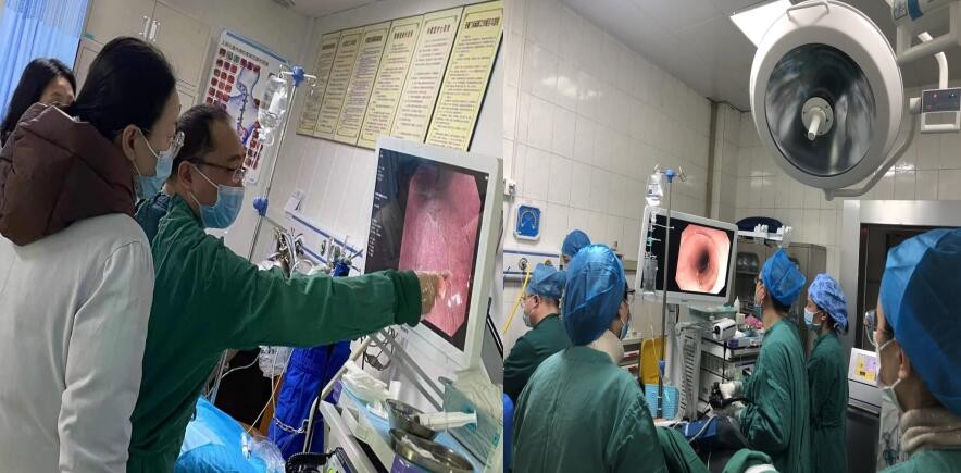 2月26日国内知名消化道早癌诊治专家-四川省人民医院消化内科胡晓副主任医师再次莅临我院指导工作,对我们近期诊治的一些病例进行回顾及点评,对我们的诊断准确性及工作成绩给予充分的肯定,对几名疑难患者进行放大色素内镜、超声内镜检查,并为一名胃早癌患者施行了内镜下根治治疗-内镜粘膜下剥离术(ESD)。