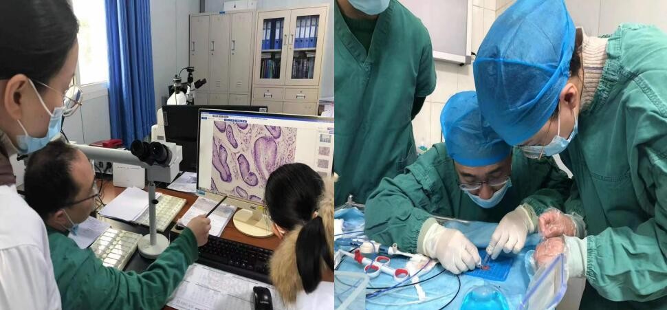 胡教授平易近人,师者风范,耐心地向我们传授消化道早癌检查的相关知识,理论结合实践,对我们的疑惑点一一解答,毫无保留地传授内镜操作技巧,为了推动我院早癌MDT团队的建设发展,胡教授来到病理科亲自阅片并与病理科刘强主任交流,给我们传授宝贵经验,并手把手教我们处理术后标本,为我们早癌诊治MDT工作持续规范开展提供了宝贵意见,并对我院病理科及麻醉科的工作给与了肯定和好评。