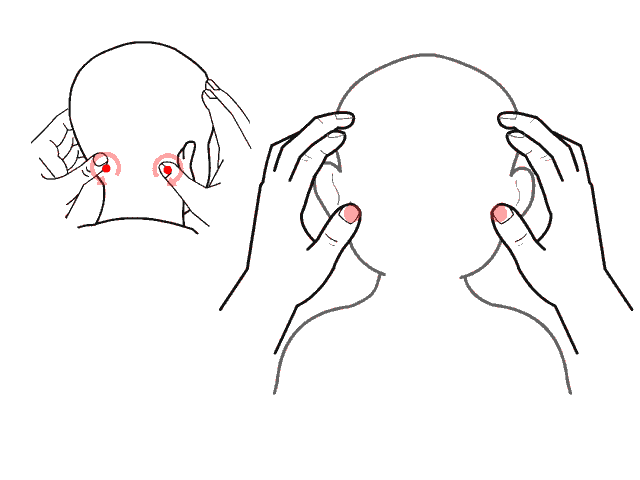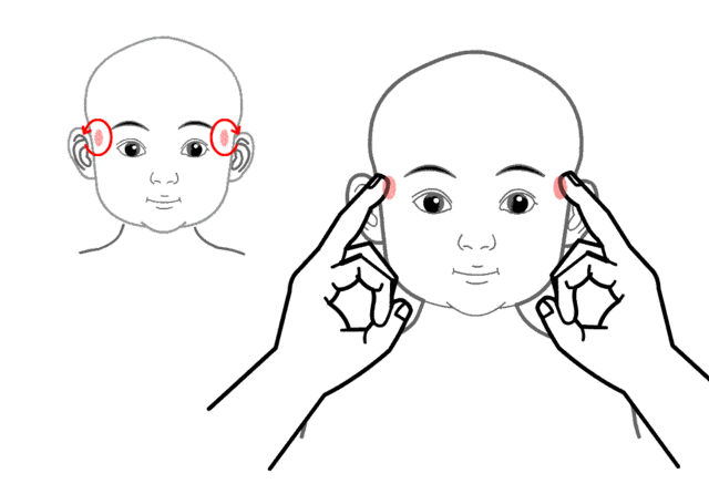 【操作】用两拇指扶小儿头,其余四指揉耳后高骨微下陷处,30~50次。