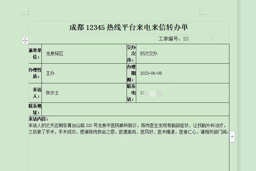 但苦于没有陈岗医师的联系方式,他们便想到拨打市长热线赞扬我院的诊疗水平,并表达了对陈岗医师的感激之情。