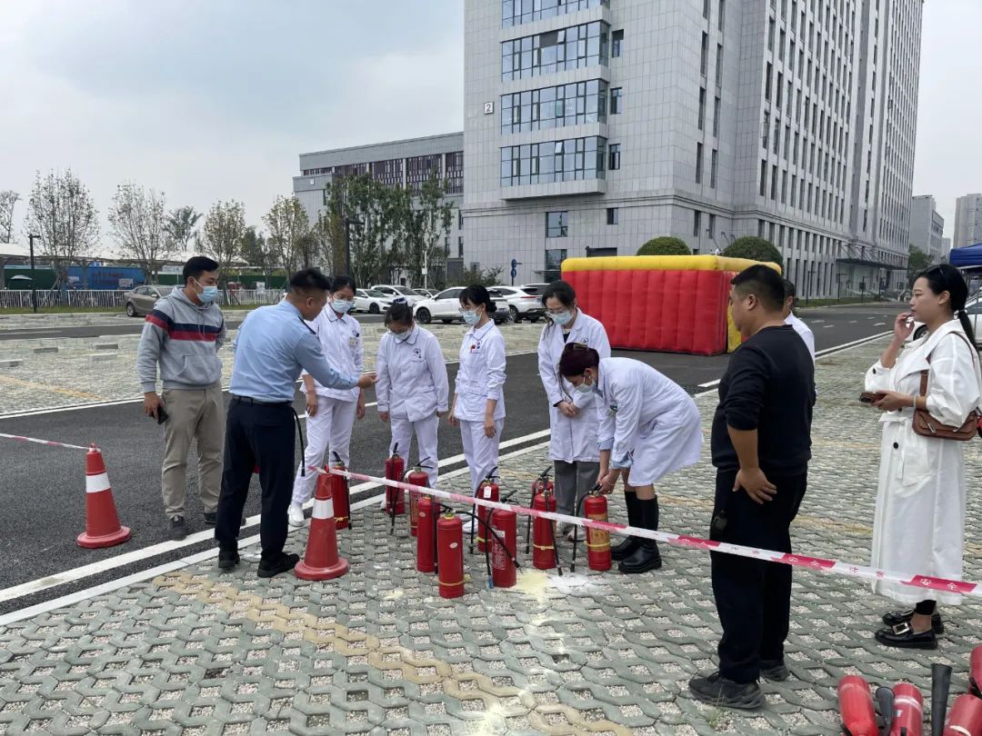 演练以灭火实操为主、穿插进行烟雾模拟舱逃生体验。全院医务人员、第三方公司外包人员共计1000余人参加,使用灭火器400余具。