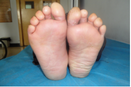 3. 前脚掌出现胼胝(老茧),行走时疼痛。前足的疼痛会使患者不自主调整足的受力点,引起步态的异常,长此以往会造成下肢关节疼痛、甚至出现腰背痛等症状。