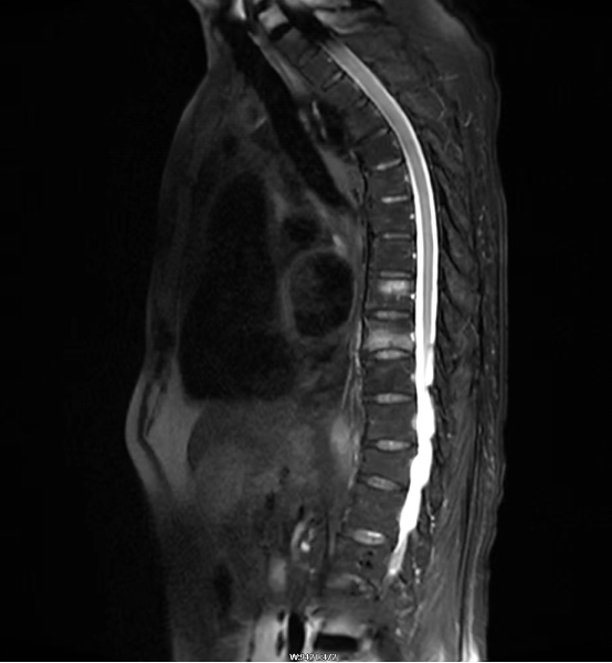 冀某某,男,92岁,4天前因无明显诱因出现腰背部疼痛,起床翻身时疼痛加重,活动受限,遂由家属送来我院就诊。骨二科石华林主任详细查体后,初步考虑患者为“老年性骨质疏松症伴病理性骨折”,结合脊柱核磁共振检查,明确患者胸8、胸9椎体新发骨折。