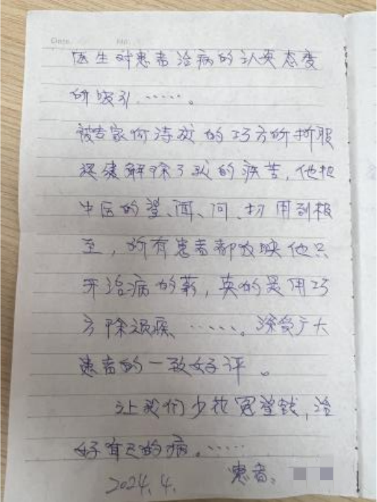 为了表达感激之情,王女士带上锦旗和感谢信,特地前来感谢何成诗主任中医师和陈容副主任中医师。她说:“是他们的精湛医术、精诚大爱和无私奉献,才换来了我今天的正常生活。我被陈容副主任中医师为患者治病的认真态度所吸引,被何成诗主任中医师的巧方所折服。他们不仅解除了我困扰多年的疾苦,还让我少花了冤枉钱,就能把病治好。他们的医术和医德值得被更多患者看到!”