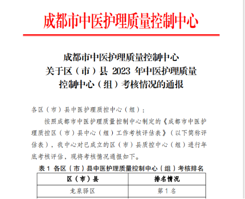 【喜报】我院荣获2023年度成都市中医护理质量控制中心考核第一名!