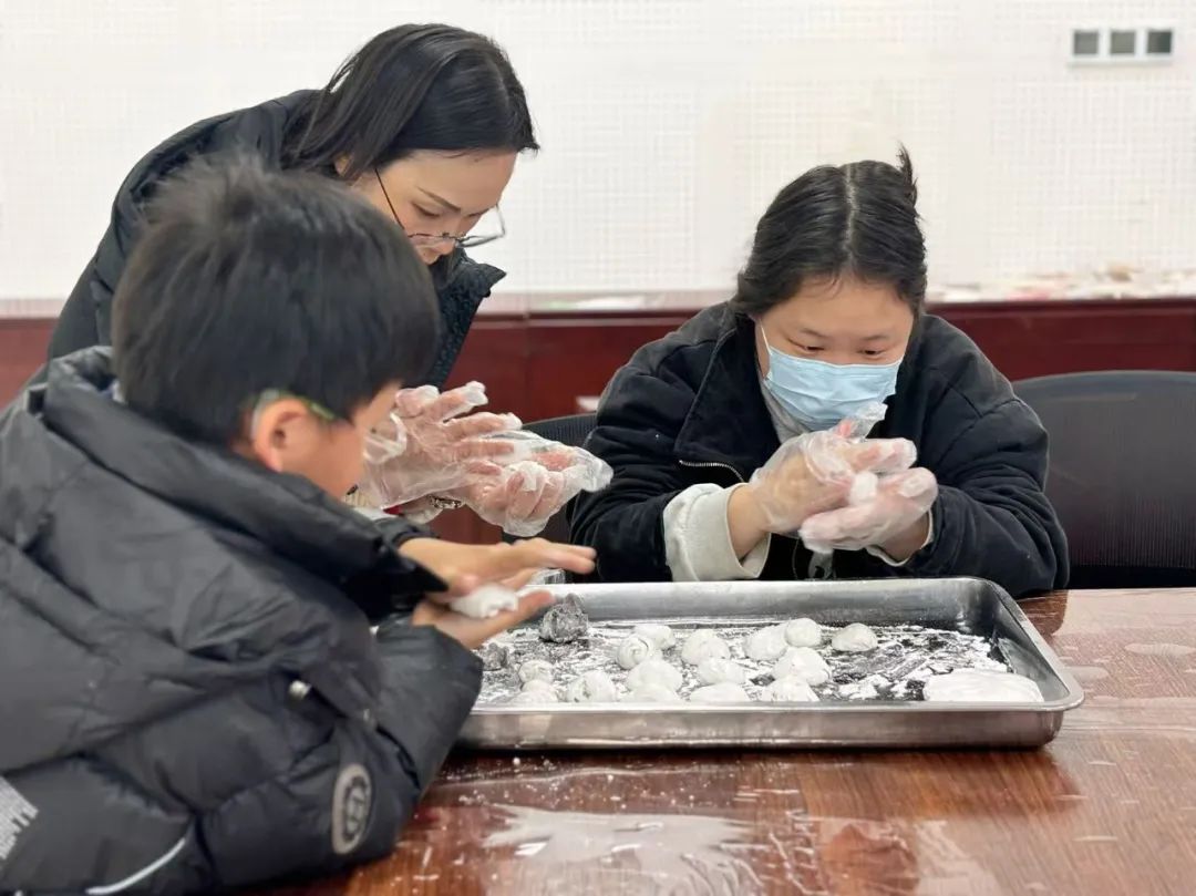 随着一盆盆糯米团被端上了桌,团员青年们开始搓汤圆,忙得热火朝天,兔起鹘落之间,几十只光滑圆润的汤圆已经静呈盘中。