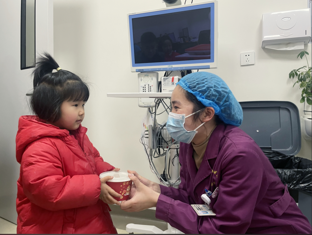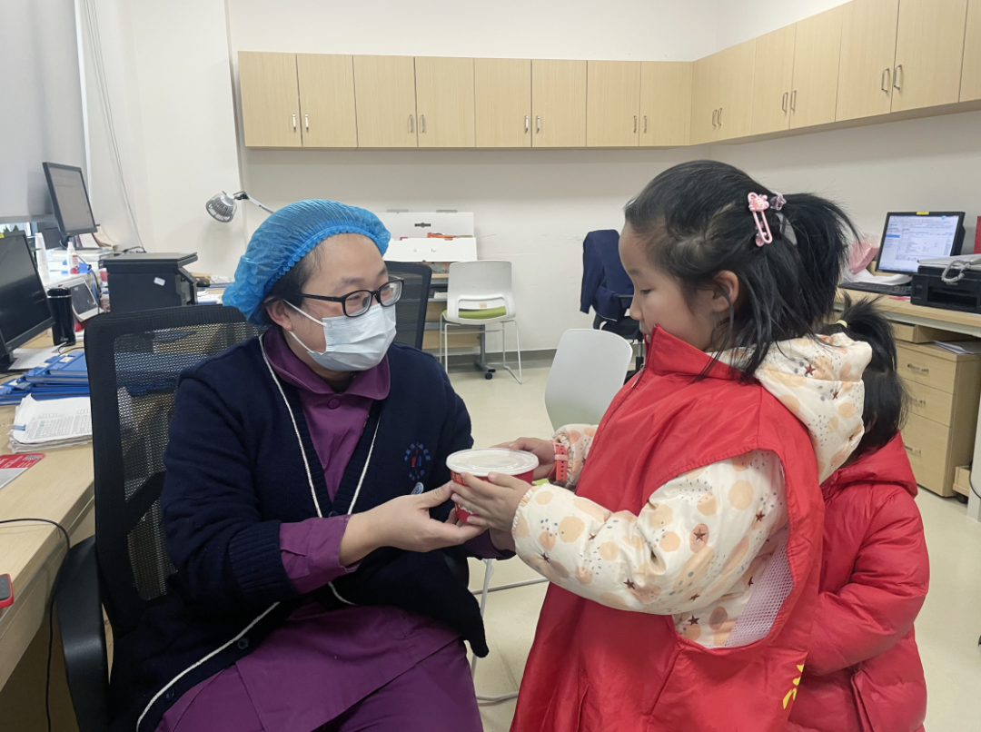 当小小志愿者们将一碗碗充满“家”味的汤圆送到医护人员及值班的父母手中时,大家脸上都洋溢着幸福的笑容。