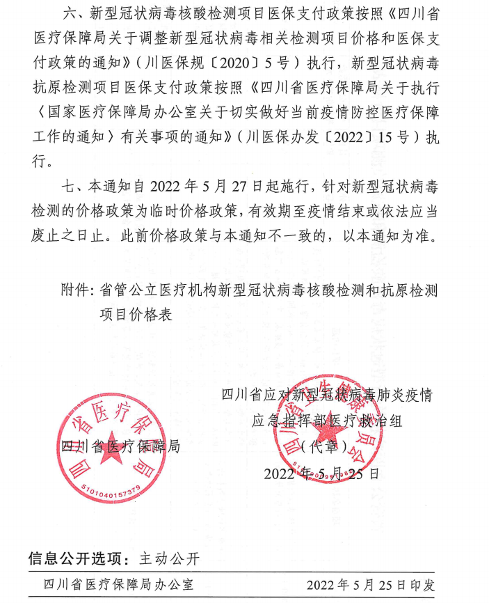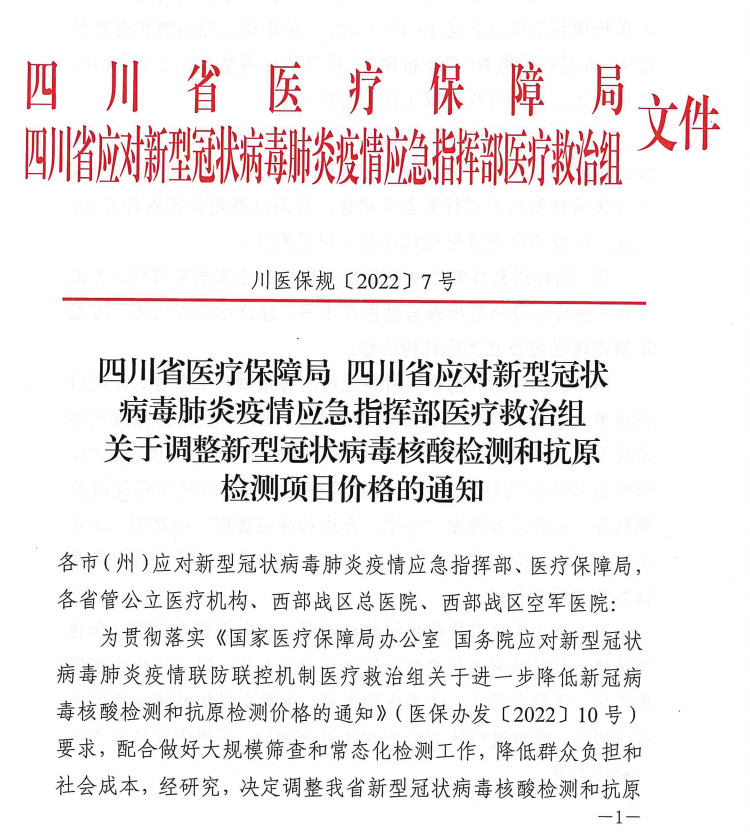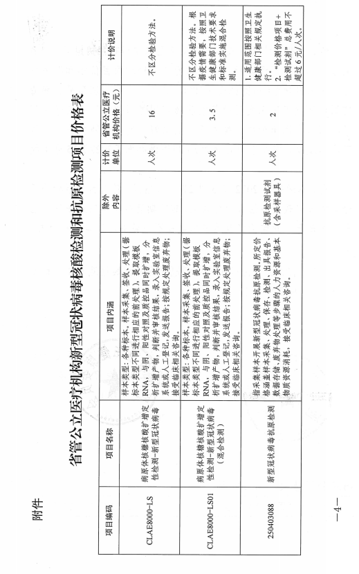 关于调整新冠病毒核酸检测和抗原检测项目价格的通知