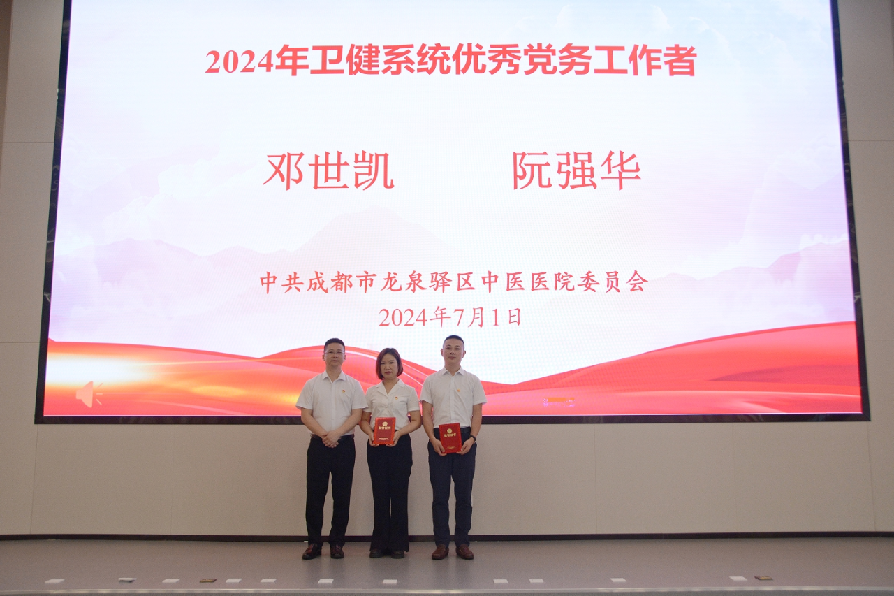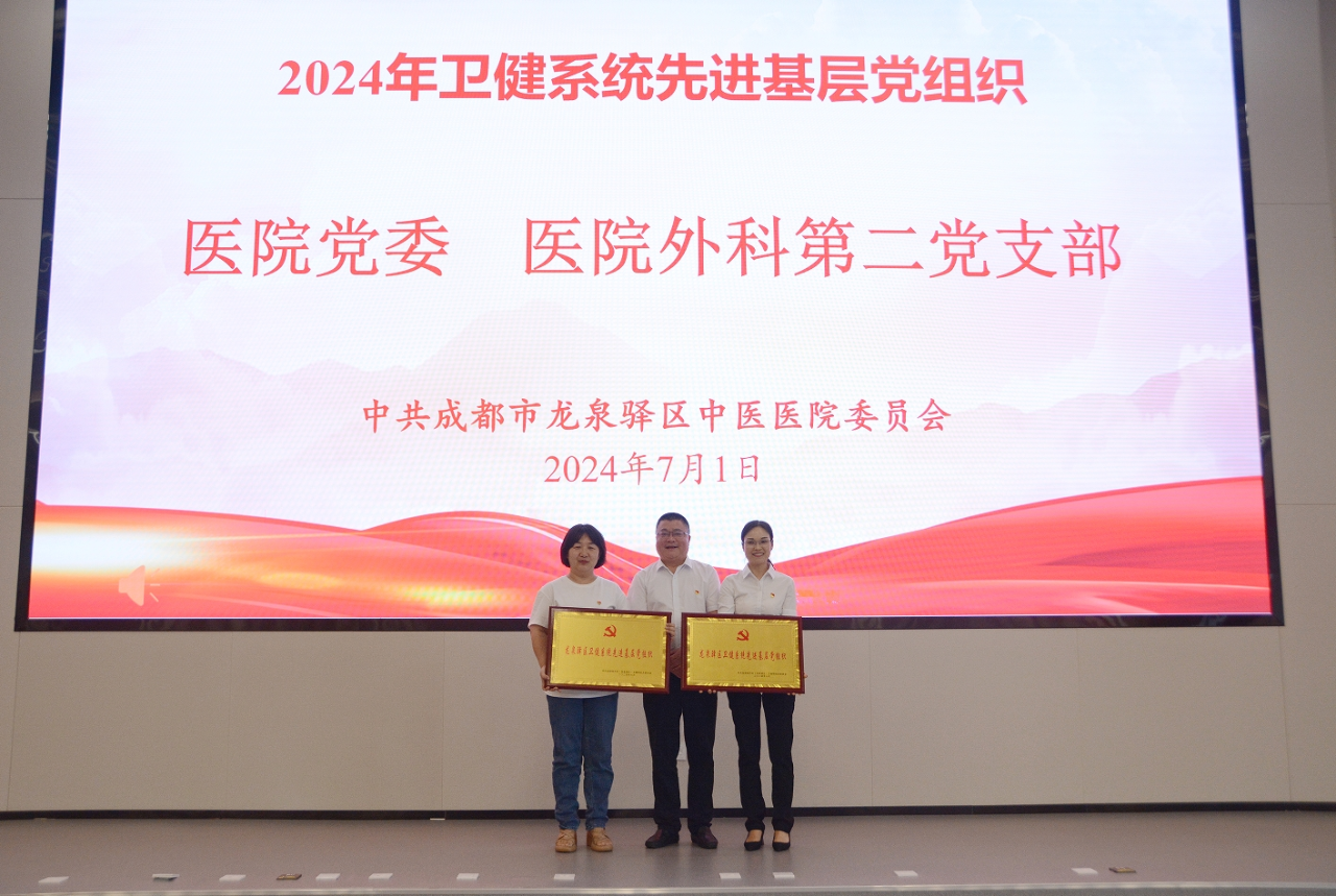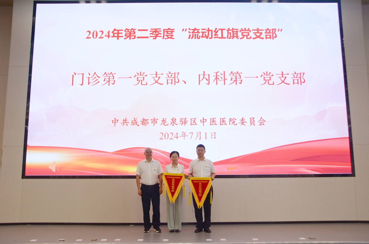 大会宣布了医院获得“2024年卫健系统优秀共产党员、优秀党务工作者、先进基层党组织”、“2024年龙泉驿区优秀共产党”、2024年第二季度“流动红旗党支部”、“党员先锋示范岗”名单。对荣获“流动红旗党支部”的门诊第一党支部、内科第一党支部以及荣获“党员先锋示范岗”称号的张云霞等17名党员进行授旗、授牌,为全院党员干部职工树立了学习标杆,激励全员向先进看齐。