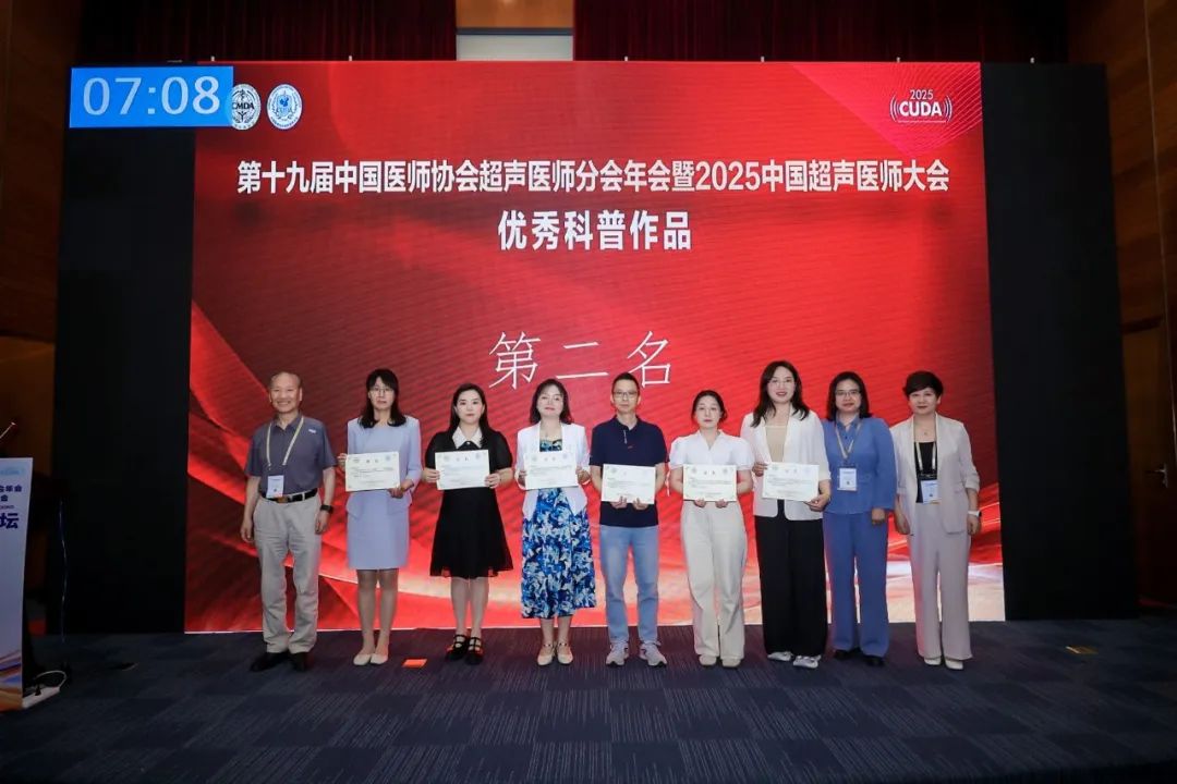 此次大会,来自全国各级医院的超声科普工作者积极响应,共提交600余件形式多样的作品。在激烈的竞争中,仅有18件作品突破层层筛选,获得现场展演的宝贵机会。其中我院付学蓉医生的作品就是其中之一,在现场展演环节,付学蓉将党建工作中锤炼出的严谨作风融入科普讲解,赢得了评委和观众的一致好评,并在众多优秀选手中脱颖而出,摘得二等奖,这也是我省唯一获得此殊荣的区县级医疗机构。