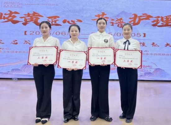 经过团队连续数月的不懈努力,终于不负众望,于2025年6月5日,龙泉驿区4名中医护理代表在第三届成德眉资巴中医护理技能大赛中从36支队伍中脱颖而出,斩获团体一等奖。其中,毕双、蒋金惠获个人一等奖,杨智颖、肖华利获个人三等奖,以卓越的表现书写了龙泉中医护理人的荣耀篇章!此次佳绩得益于龙泉驿区卫生健康局的统筹部署、区域医疗机构的协同支持,以及备赛护理团队全力以赴的匠心耕耘。